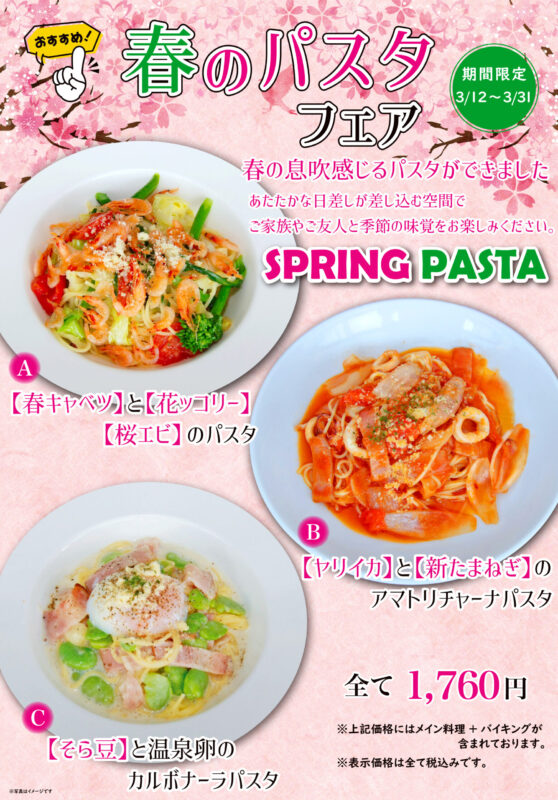【春のパスタフェア】開催中♪